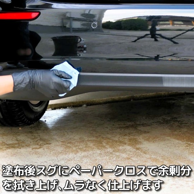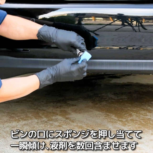※施工例の大型SUVフェンダー樹脂モール4輪分でも、使用量は2~3ml程度です。使い過ぎにはご注意ください。