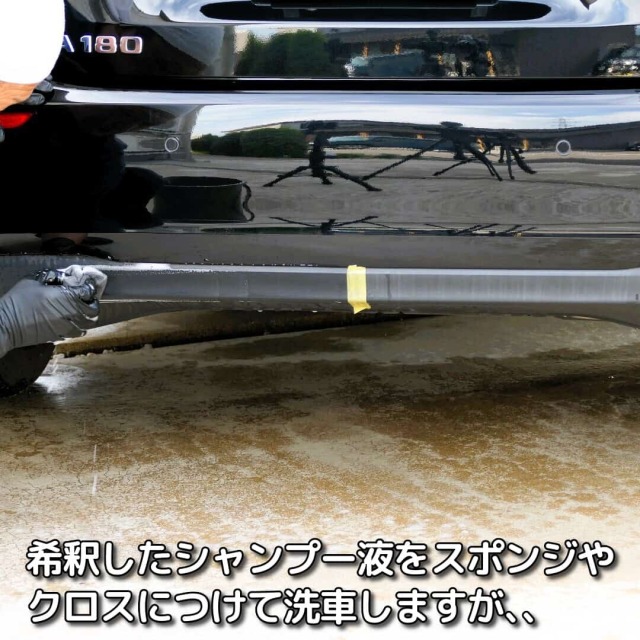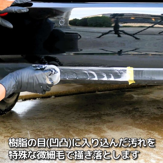 ムートンクロスなど毛足の長いクロスを使い、通常のシャンプー洗車を行います。