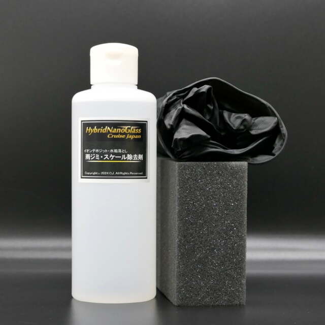 雨染み・スケール除去剤単体では落とせなかったとしても、コンディショナーを続けて施工することで汚れへのアプローチを多面的・複合的に行い、コンパウンドを使用せずに落とせる可能性が出てくるかもしれません。