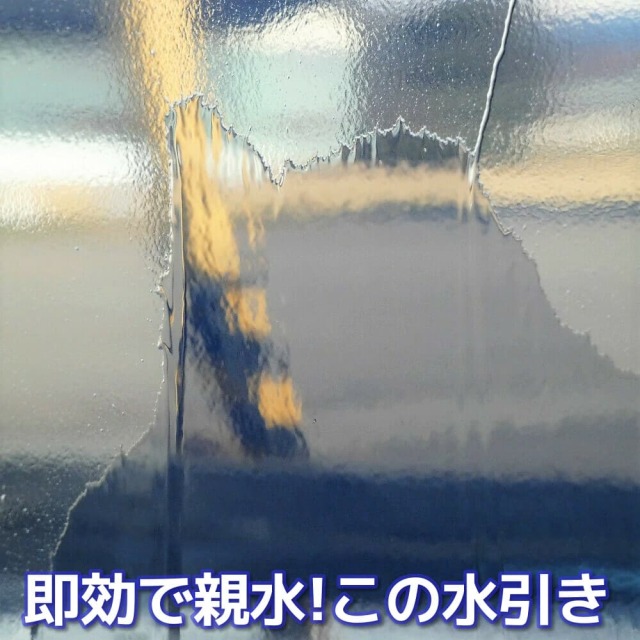 なお、施工時に下地処理をきちんと行えば本来の親水効果が発揮されますが、下地に他のコーティングが若干残っていたとしてもその既存性能の影響により、若干撥水的であったり疎水的であったりというようなアレンジ的な対水効果をお楽しみいただけると思います。