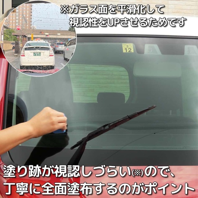 あと、うちの車はスバル車でアイサイト付き(つまりフロントにカメラ有り)なのですがメーカー的に推奨されているのはス●ーボ●ド社のフッ素系のウインドウコーティング剤だったりしますのでそこに合わせているのも有ります。